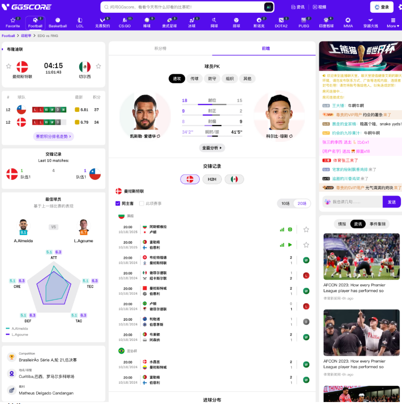 除了基礎的比分資訊,GGscore 更提供豐富的進階數據分析功能: