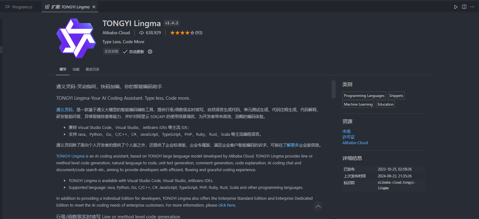通义灵码,基于通义大模型的 AI 研发辅助工具,提供代码智能生成、研发智能问答、任务自主执行等能力,为开发者带来智能化研发体验,引领 AI 原生研发新范式。