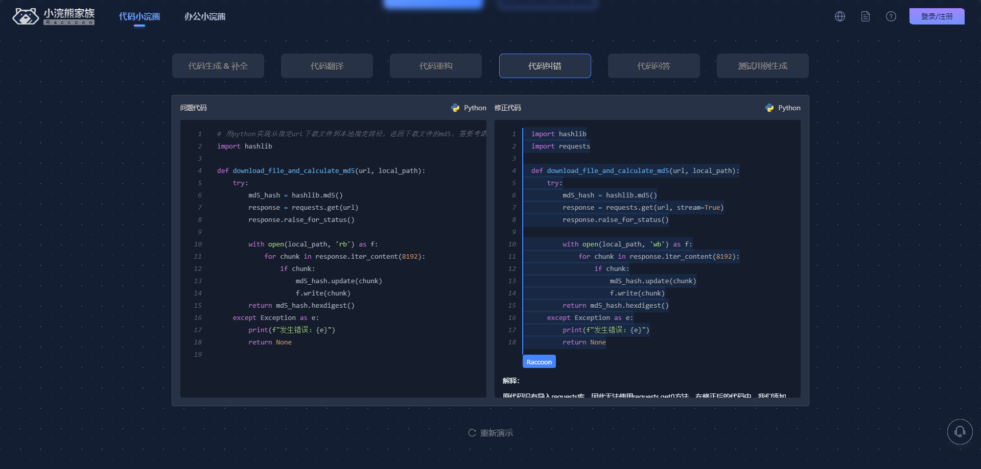 代码小浣熊是基于商汤大语言模型的软件智能研发助手,覆盖软件需求分析、架构设计、代码编写、软件测试等环节,满足用户代码编写、编程学习等各类需求。
