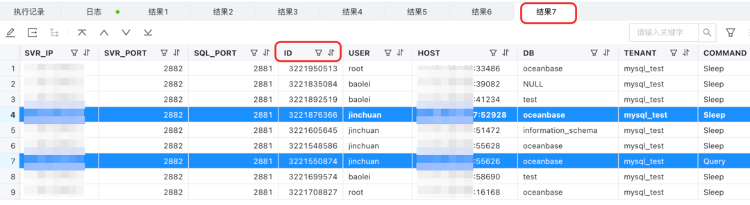 ID:在不同的查询场景下,这个列有时显示的是 csid 值,有时是 serversessid 值。