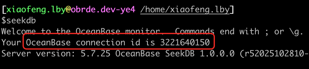 connection id:MySQL 租户使用函数 connectionid() 查询获得,就是 serversessid。需要注意的是使用 obclient 连接 proxy 时候,登陆信息中会有输出 Your Mysql connection id is xxx,这里显示的 id 是 cs_id。