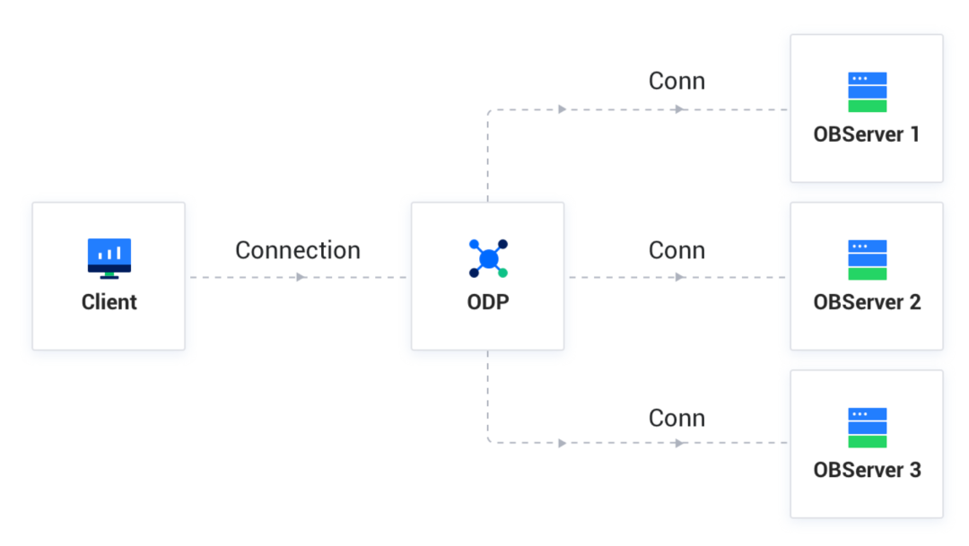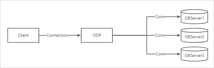 图中直观的展示了客户端(client)和数据库(ODP + OBServer)之间的链路关系。