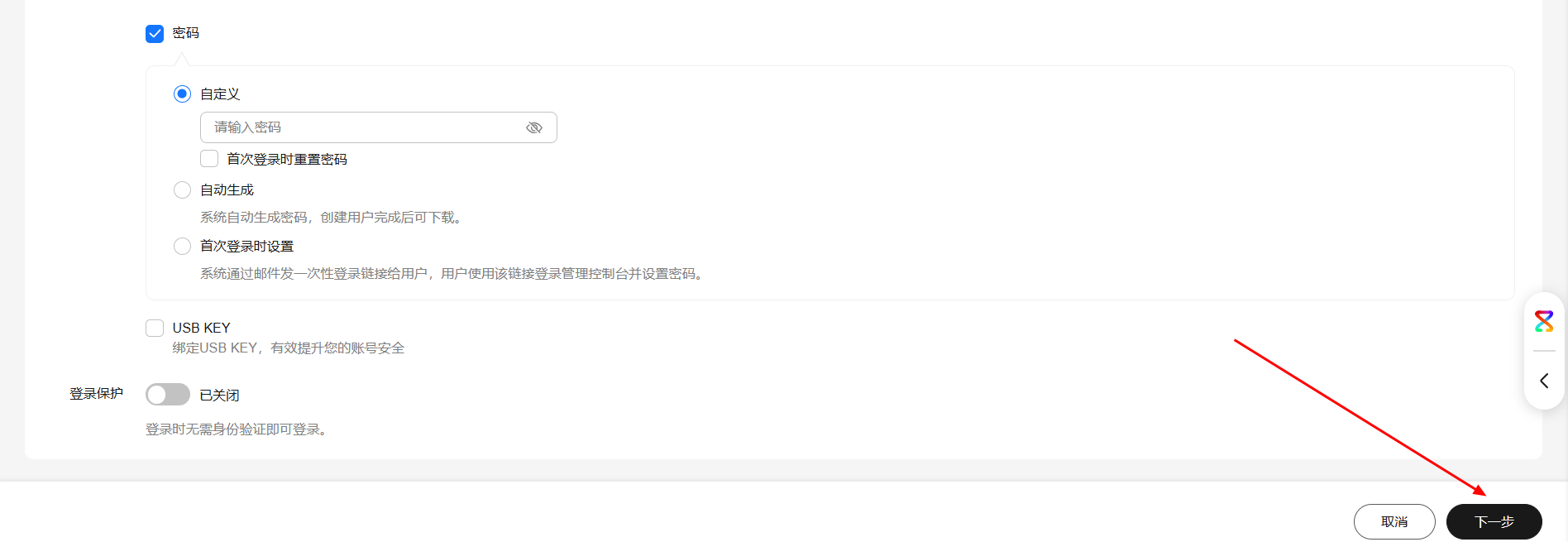 注意:记录 IAM 用户名、IAM 账号密码,IAM 用户登录时需要使用。