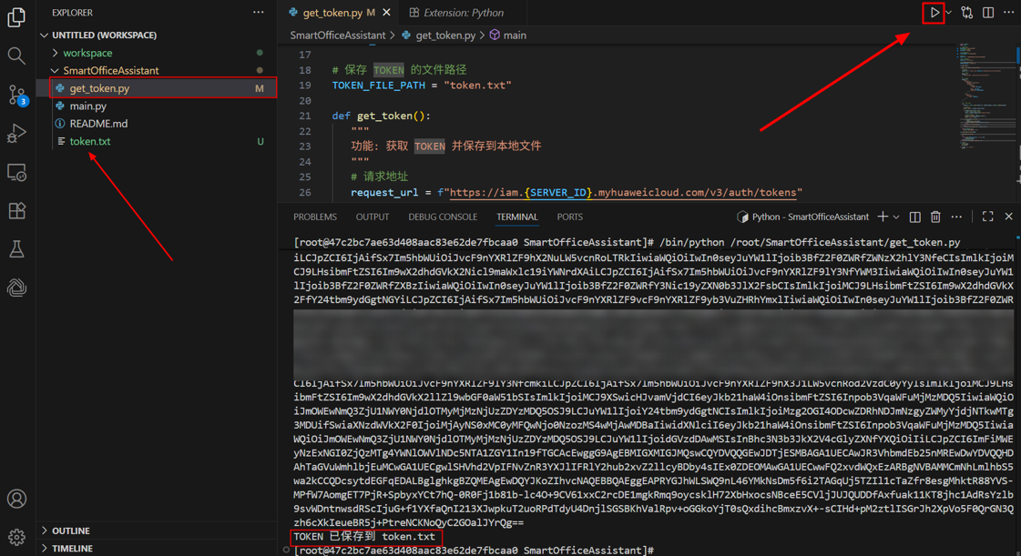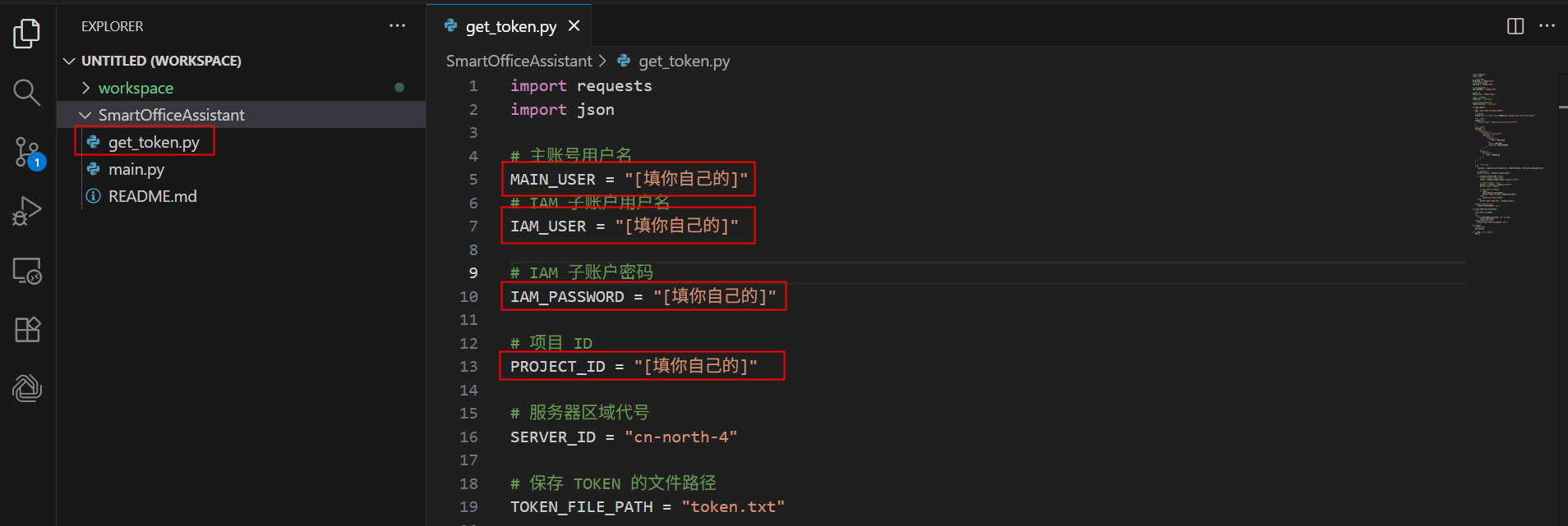 在 SmartOfficeAssistant 文件夹下,查看编辑 get_token.py 文件。