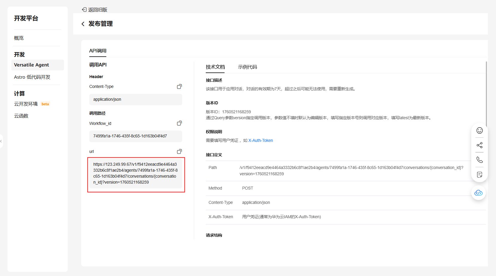 发布完成之后,记录调用 API 的 url,留作后面步骤使用。