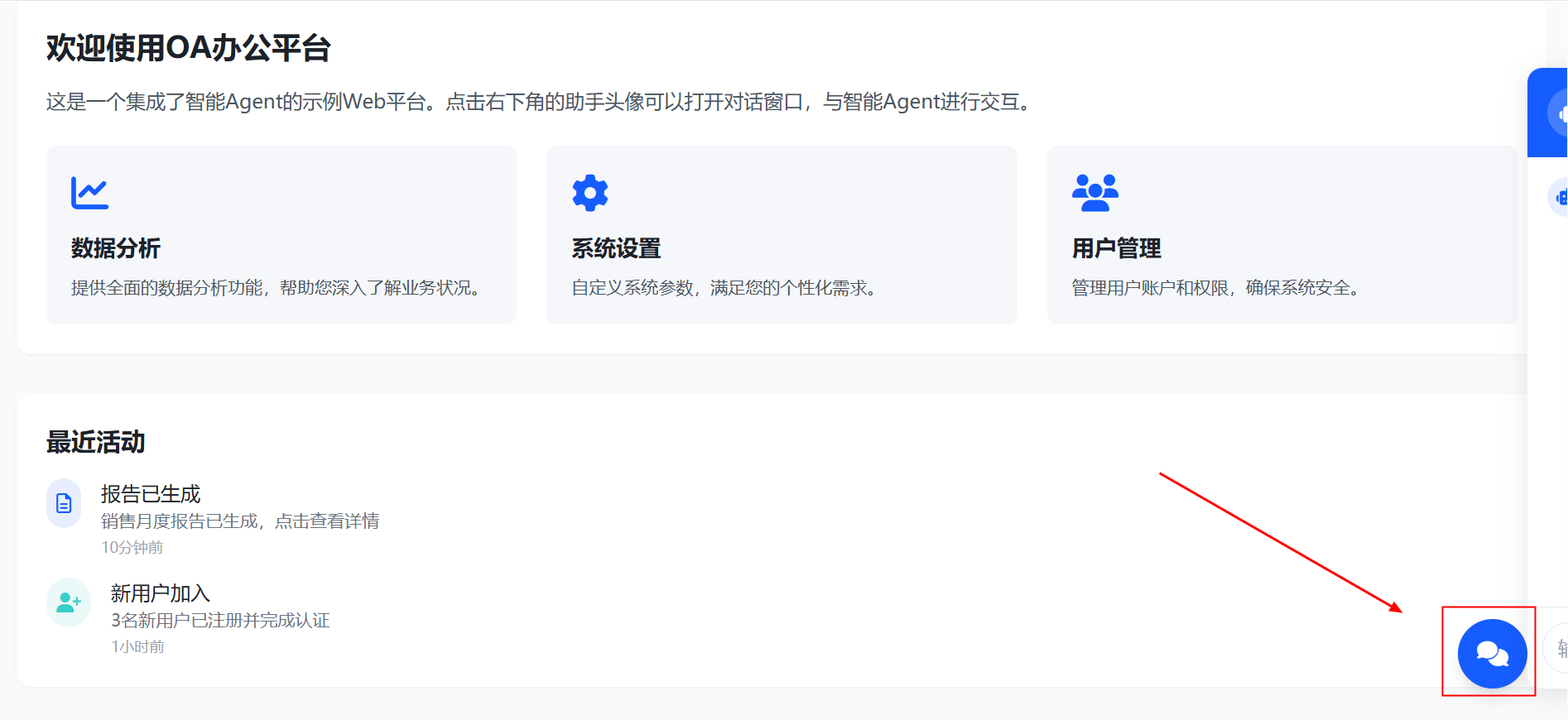 本案例基于华为开发者空间-云开发环境(容器)+ Versatile Agent,快速构建并集成一个轻量级智能办公助手 Agent 到模拟 OA 系统中。案例覆盖从 Agent 创建、发布到本地连接云开发环境(容器)开发联调的完整流程,最终通过 Web 界面模拟办公系统,实现智能问答、流程指引等基础功能。适合中小型企业或开发者低成本验证 AI 办公场景。