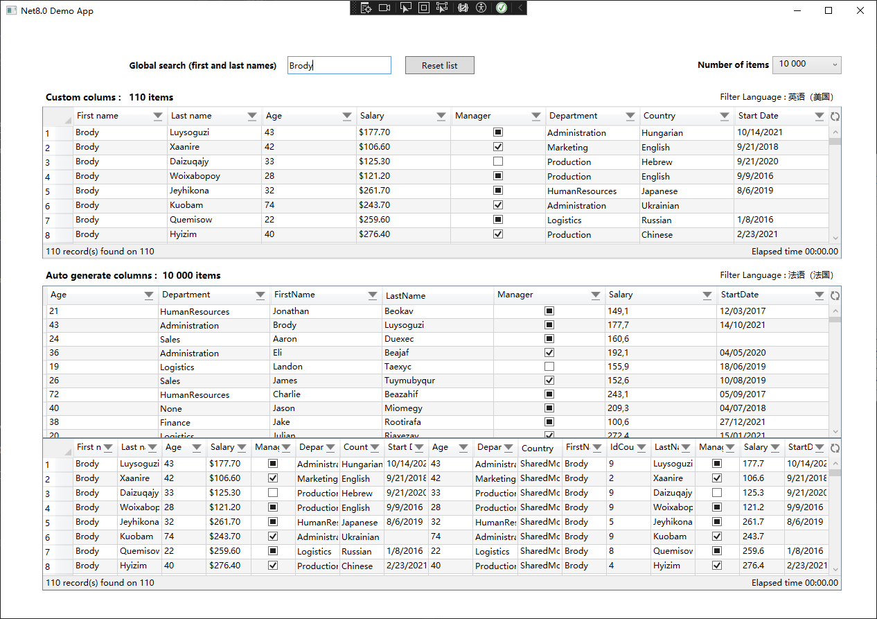 一款开源、多语言的 WPF 可筛选 DataGrid 控件