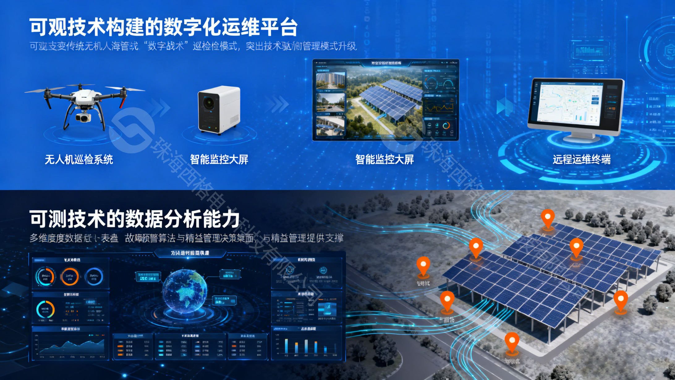 1、“可观”技术构建的数字化运维平台,彻底改变了传统光伏电站“人海战术”的巡检模式