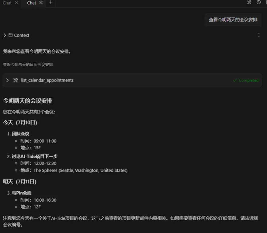 我们这里采用了开源的 Wallisking1991 开发的 Outlook MCP Server [附录 1]。它是一个专门为 Microsoft Outlook 设计的 MCP 实现,为了提高显示效果,我们还增加了日历管理功能[附录 2]: