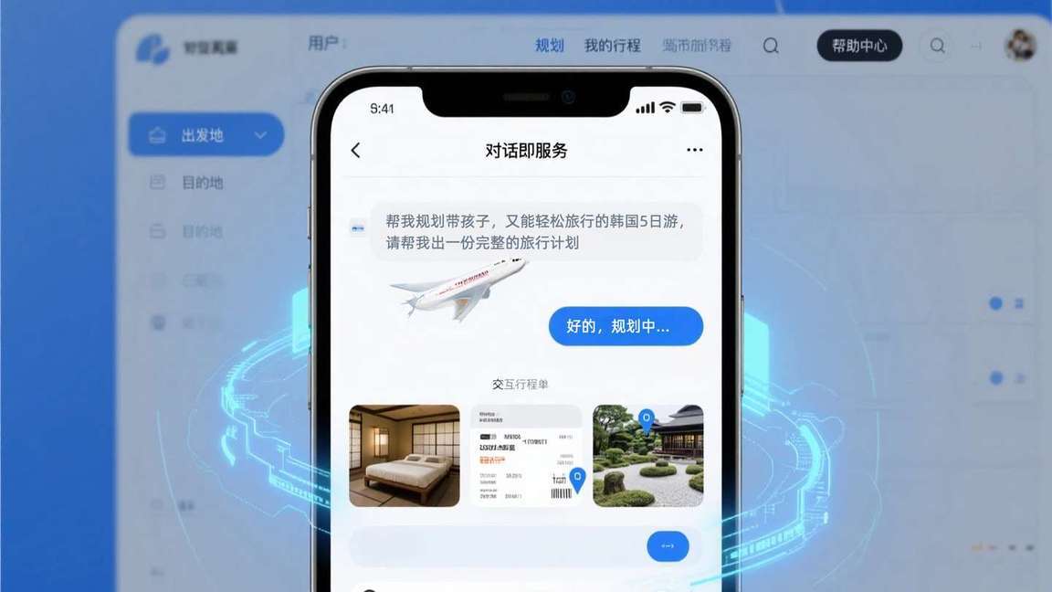 过去你在旅行 App 里订行程,要反复切换机票、酒店、景点门票页面,比价、查日期、看动线。而现在,你只需要在对话框里输入:“帮我规划一个带孩子、又能安静放松的京都五日游,预算中等。”