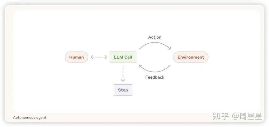 Agent 在循环(loop)中工作,根据输入自己选择合适的工具,并能根据环境反馈调整策略——例如当代码执行失败时,能根据错误信息自动修正;或根据问题性质自主决定采用 sequence 还是 Parallel 的 workflow 方式解决。