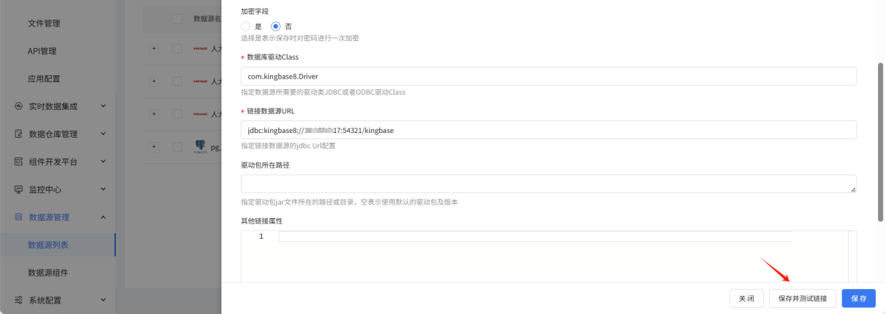 配置完成后点击保存并测试