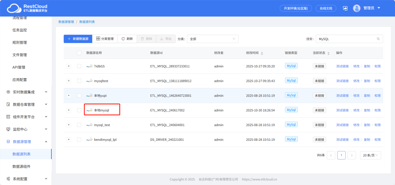 按照同样的方法我们再创建一个 MySQL 数据源,名字叫本地 mysql。