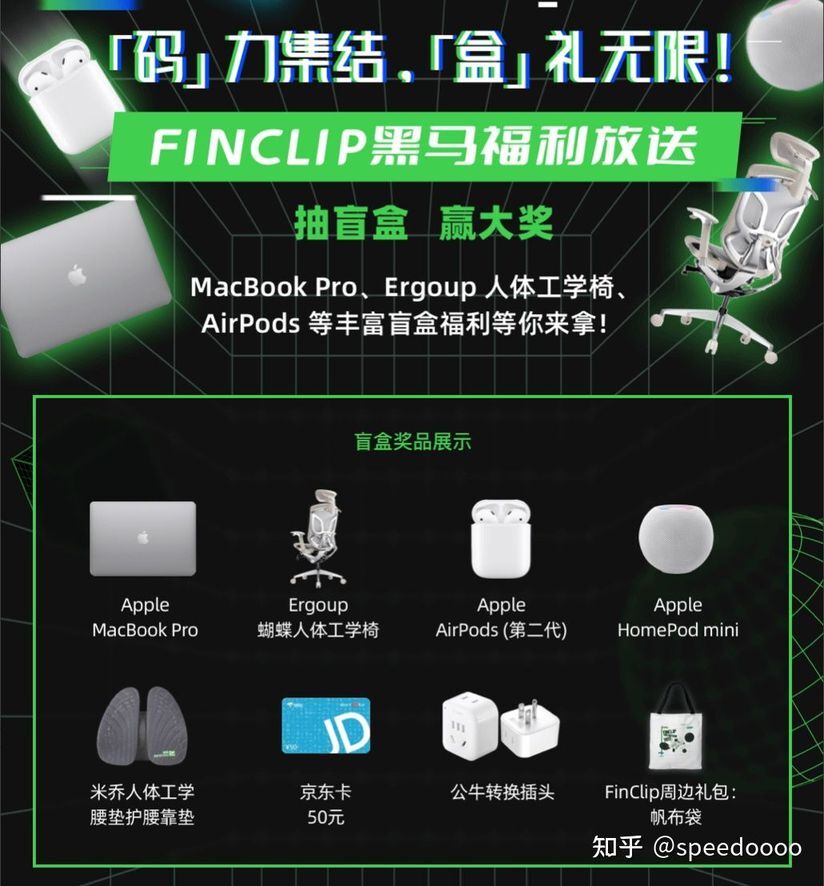 除了赛事奖金之外,主办方还为吃瓜群众们准备了盲盒抽奖活动。 只要你参与赛事海报分享、为支持的战队打 call、体验 FinClip 平台均可参与盲盒抽奖。Mac pro、人体工学椅、苹果音响等海量礼品等你抱回家!