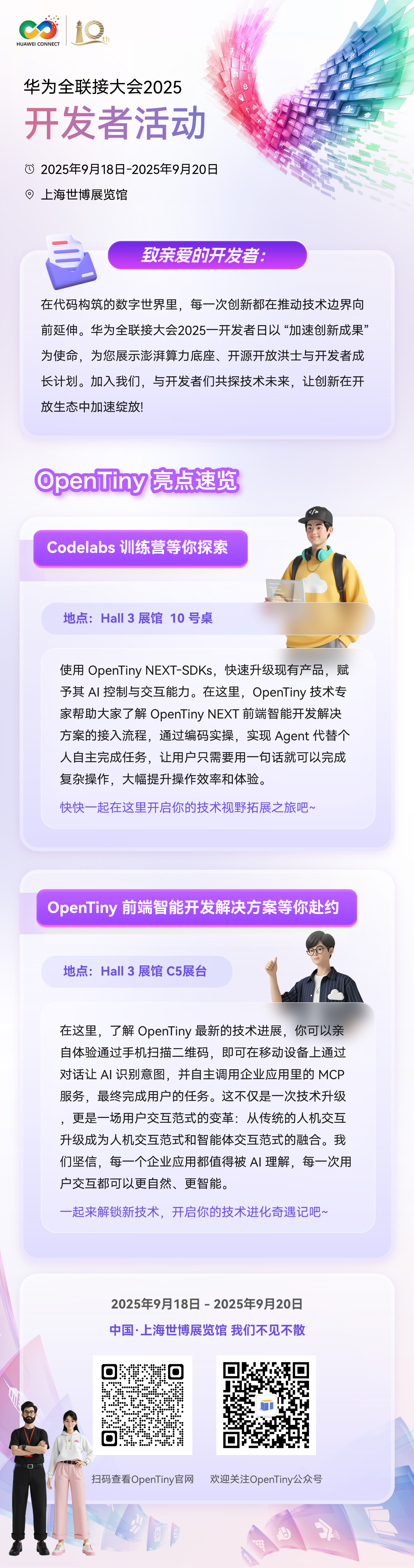 华为全联接大会 2025 最新剧透!OpenTiny 邀请你一起来开发者展岛~