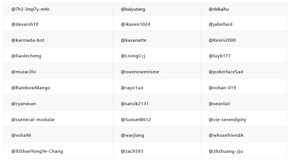 Karmada v1.16 版本包含了来自 30 位贡献者的 263 次代码提交,在此对各位贡献者表示由衷的感谢: