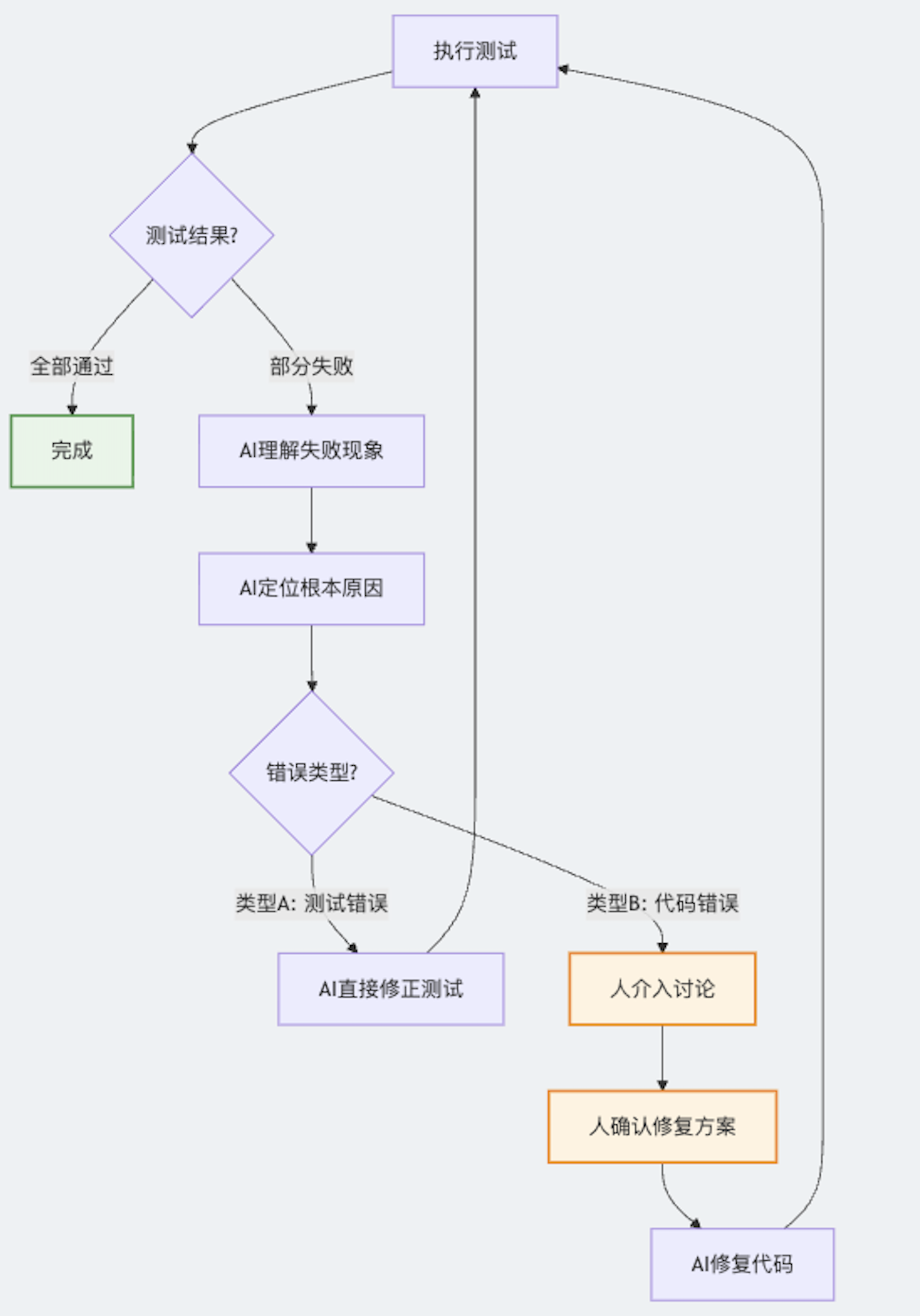 测试失败时:甄别是功能问题还是测试问题(AI 可以协助判断,但还是得靠人做最终决策)