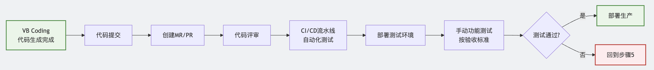 传统开发流程中,代码评审和测试环节经常发现大量问题导致返工。而 VB Coding 通过前面的 6 个步骤: