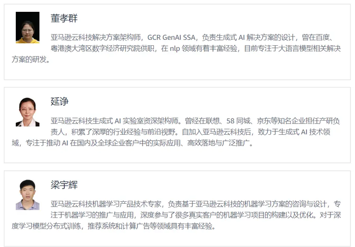 *前述特定亚马逊云科技生成式人工智能相关的服务目前在亚马逊云科技海外区域可用。亚马逊云科技中国区域相关云服务由西云数据和光环新网运营,具体信息以中国区域官网为准。