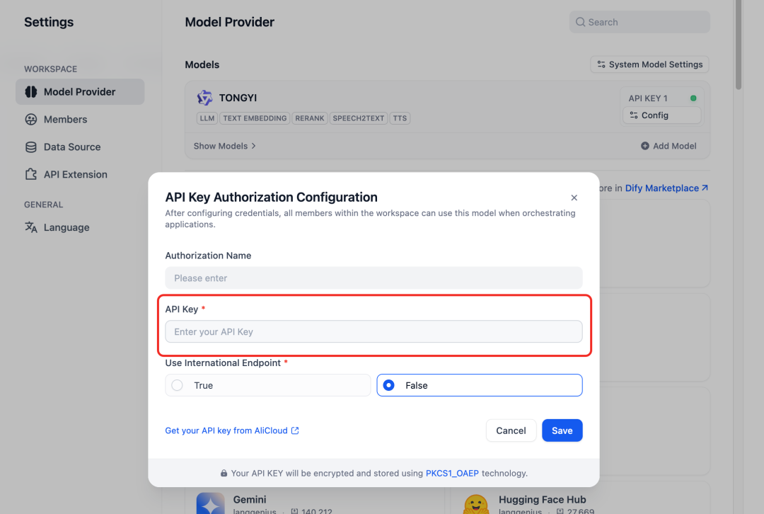 http://localhost/install注册管理员账号并登录。测试向量能力:创建一个知识库 (Knowledge Base),上传文档并观察切片与索引过程。如果能够成功嵌入 (Embedding) 并检索,说明 SeekDB 向量存储配置成功。第一次创建知识库之前还需要配置 API KEY,详细步骤会在下面的 “通过 Dify 构建 AI 应用” 部分为大家介绍。