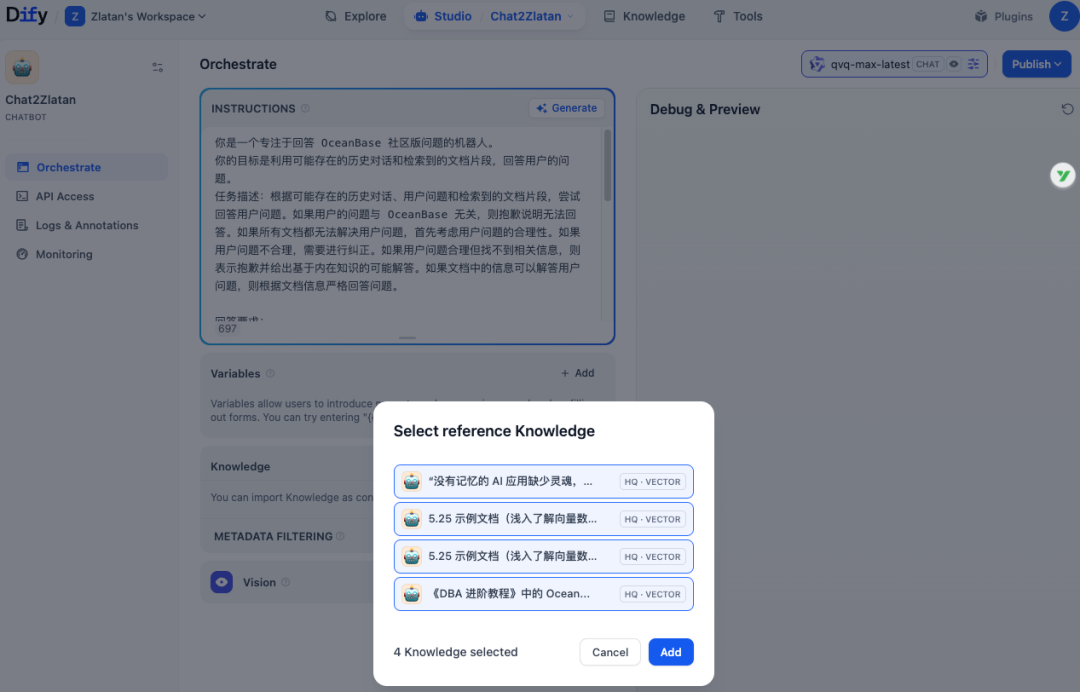 喂饭级教程 II —— Dify x OceanBase seekdb 使用指南