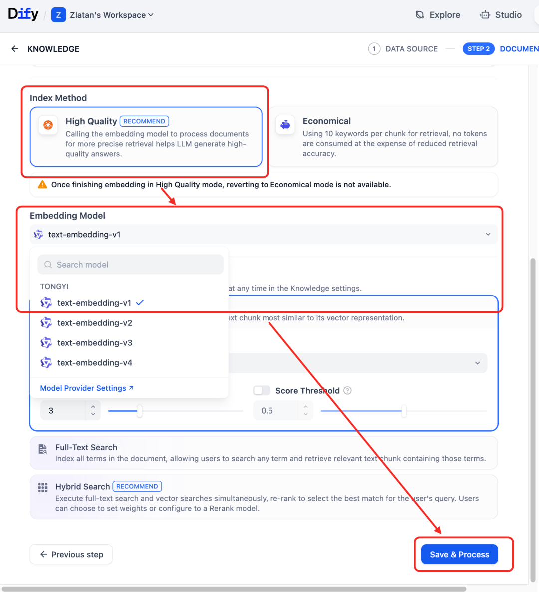可以选择版本最高的 embedding 模型,例如 text-embedding-v4。