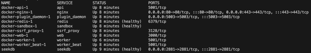 容器启动后会自动执行 Dify 元数据库的初始化和迁移,此步骤大约耗时 1 ~ 2 分钟。