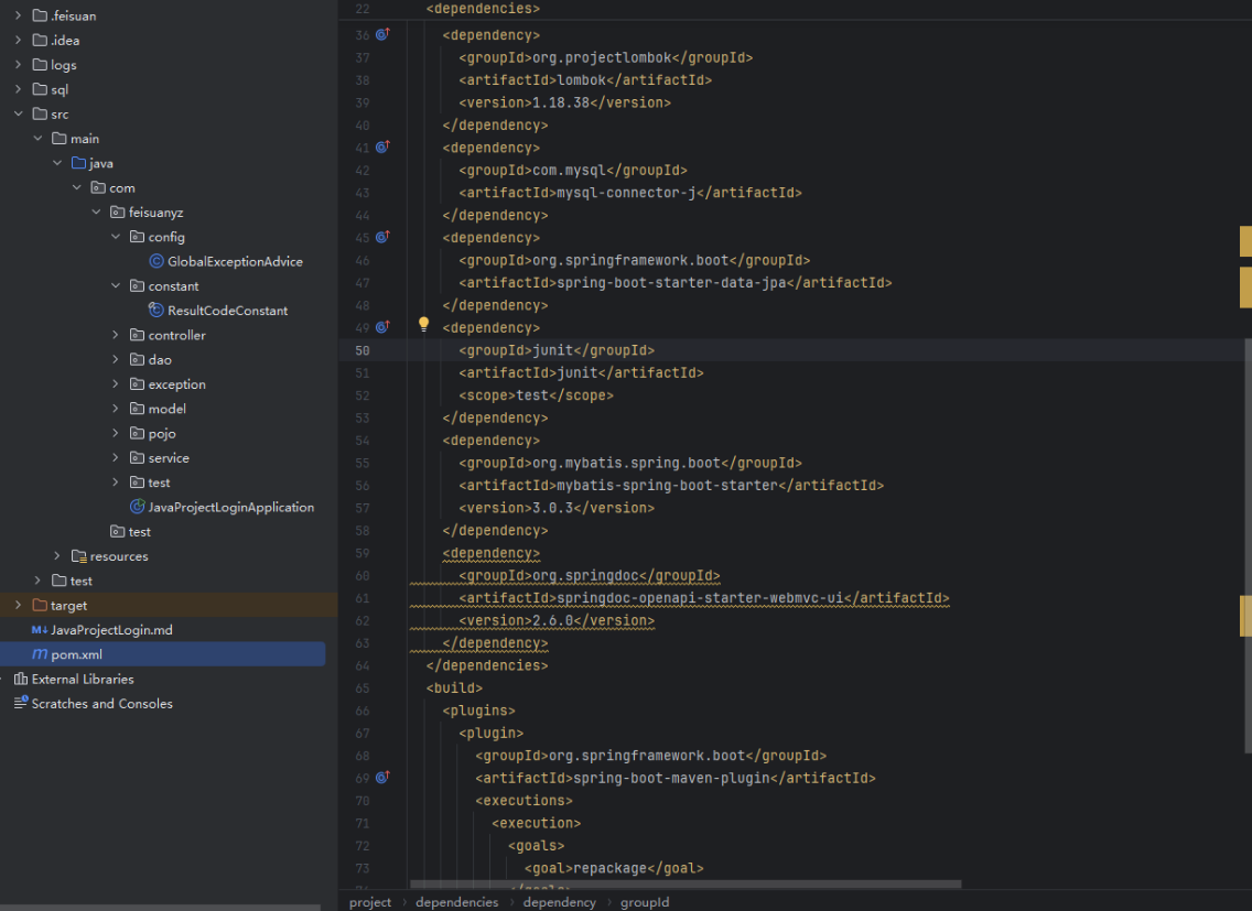 必要的依赖项(如 spring-boot-starter-security、jjwt)已自动添加到 pom.xml。