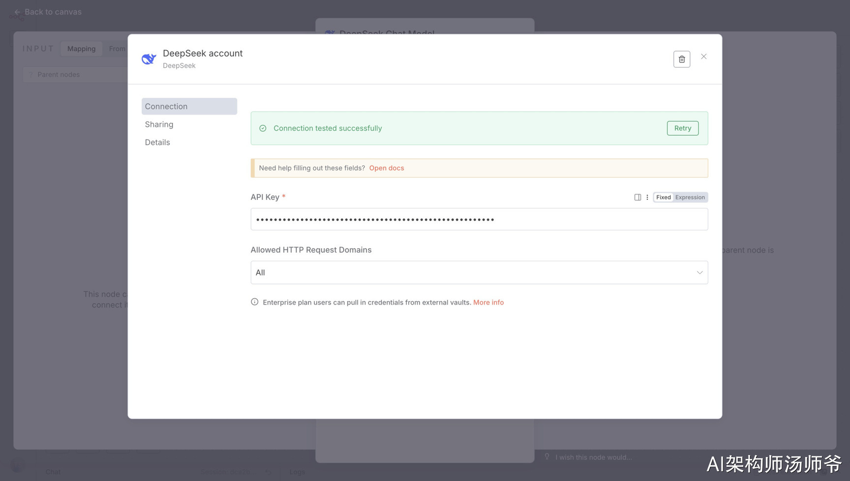 在这里输入你从 DeepSeek 平台获取的 API 密钥(API key)。这个密钥是用于身份验证和授权访问 DeepSeek 服务的重要凭证。