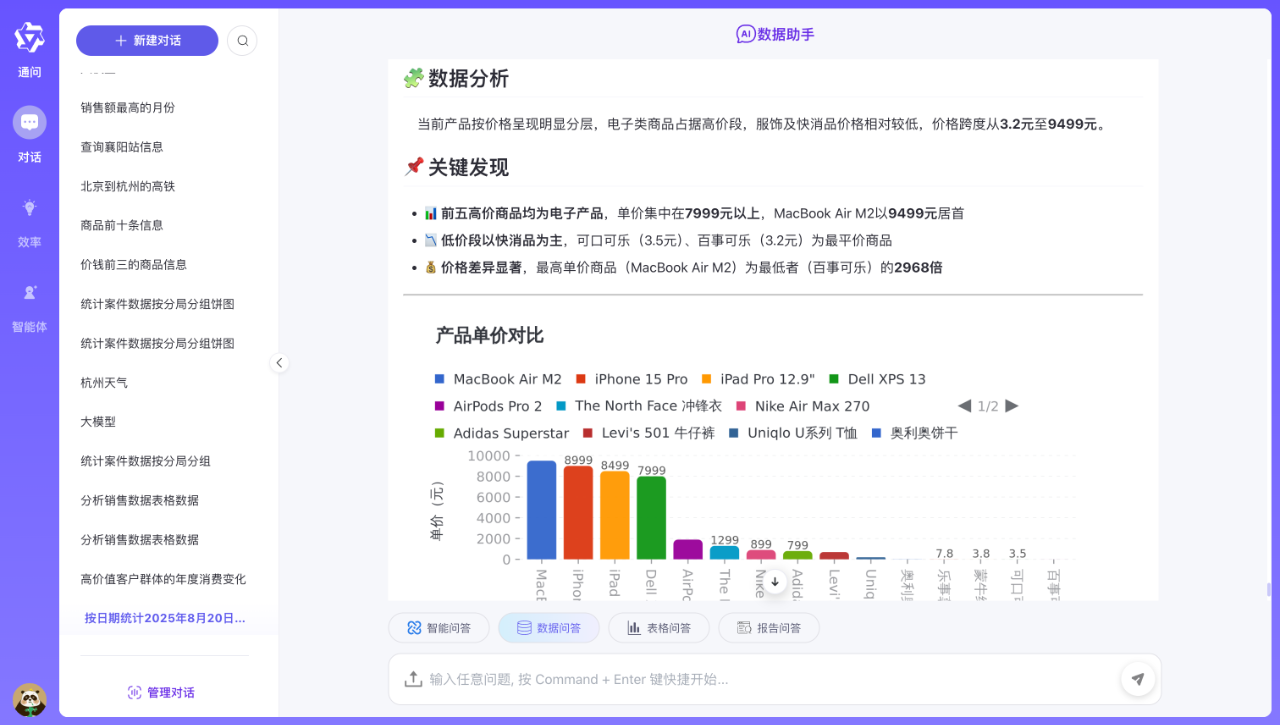 ✅ 内置 ECharts / AntV 图表问答 + CSV 表格问答