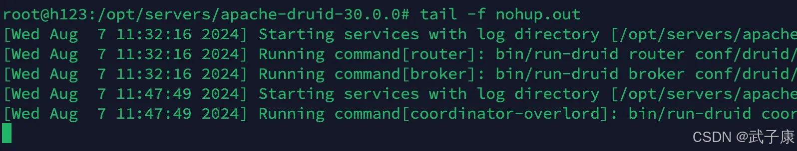 可以在 log 下查看,我这里是查看了 nohup 的内容