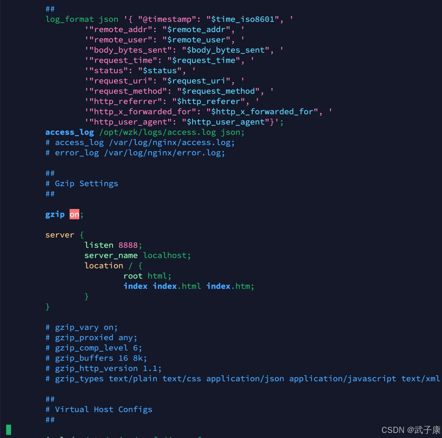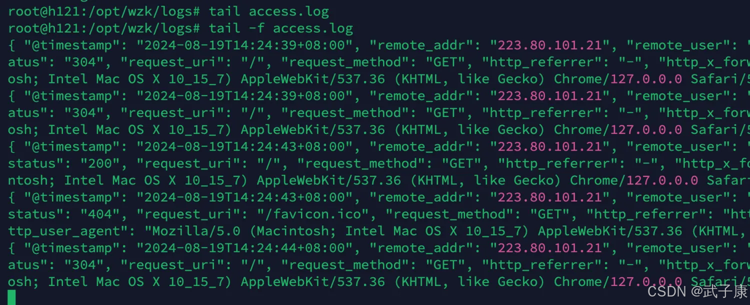 修改日志的格式(方便后续的 Logstash 进行解析,虽然 Logstash 可以通过正则的方式来实现字段的提取,但是效率并不高)。