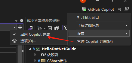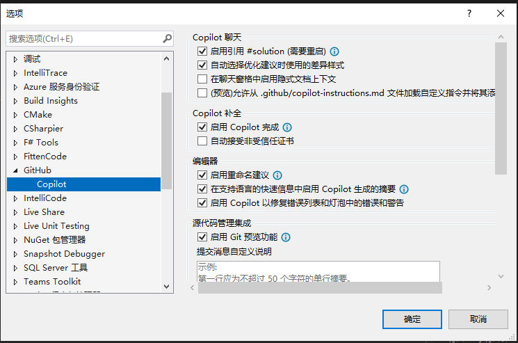 Visual Studio 中 Copilot 的相关设置