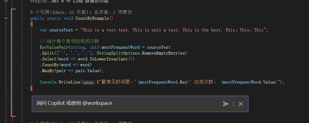 Visual Studio 中使用 Copilot 修改我的代码