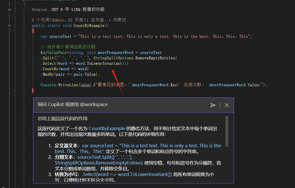 Visual Studio 中使用 Copilot 汇总我的代码