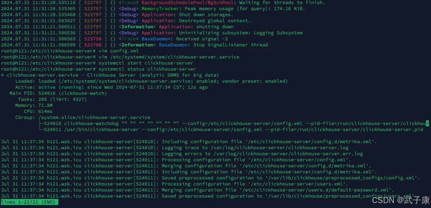 systemctl start clickhouse-serversystemctl status clickhouse-server