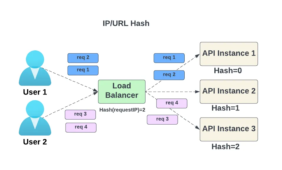 - 哈希 —— 该算法对传入请求的 IP 或 URL 应用哈希函数。请求被路由到的实例取决于哈希函数的结果。