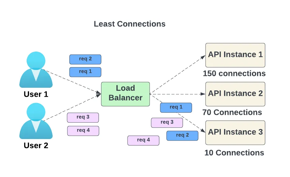 - 最少连接 —— 新请求被定向到具有最少并发连接的服务实例。