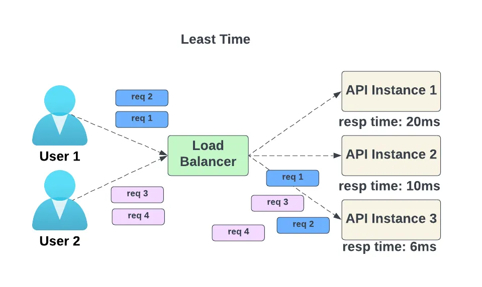 - 最短响应时间 —— 新请求被发送到响应最快的服务实例。