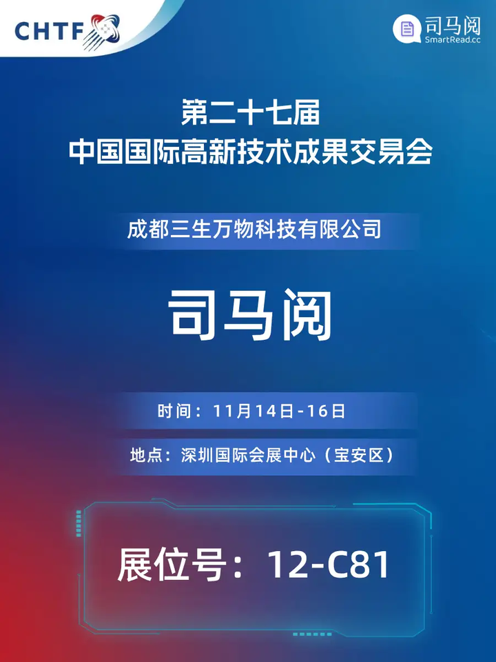 司马阅将亮相第二十七届中国国际高新技术成果交易会,助力企业 AI 在严肃场景中精准落地!