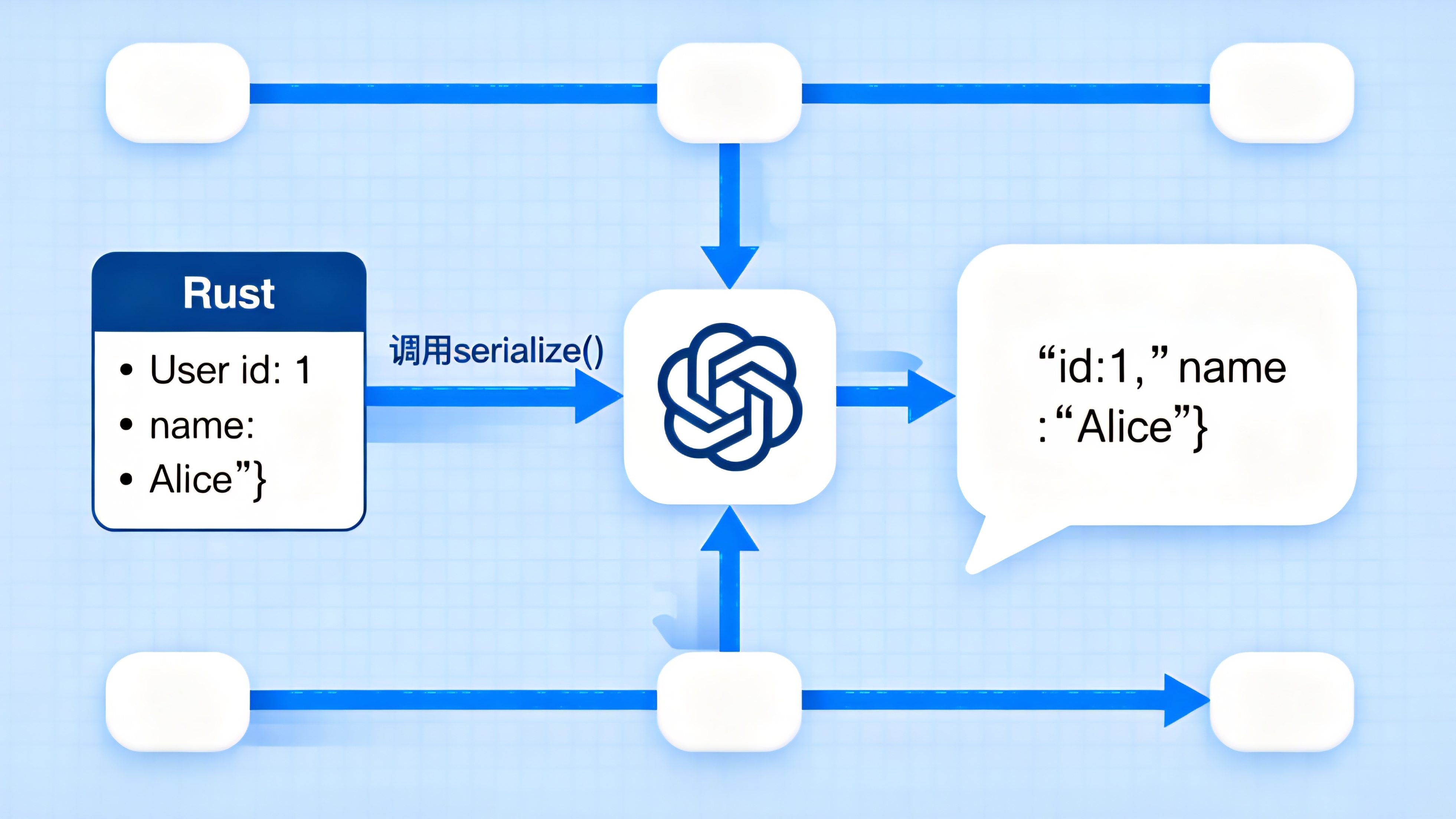 Rust 类型系统强大而严格。为了让结构体、枚举等复杂数据能与 JSON、TOML、MessagePack 等格式互通,一个理想的序列化框架应具备:
