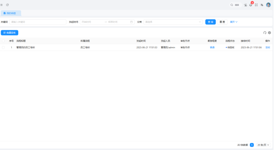 进入 “我的待签” 页面(从审批中心菜单点进去,或控制台快捷入口进入),列表会显示待签流程的标题、所属流程、发起时间、紧急程度等信息(比如 “管理员的员工培训” 流程,紧急程度 “普通”);