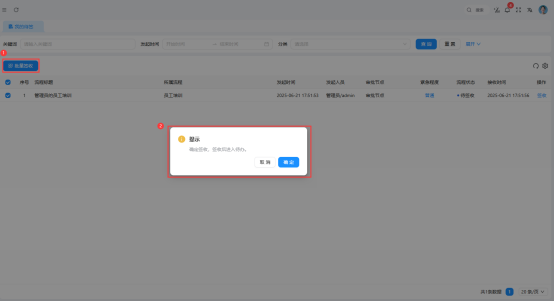 确认无误点 “确定”,所有勾选的流程会一次性完成签收,同步转到 “我的待办”—— 这里要划重点:APP 端不支持批量签收,只能在电脑端操作,要是在手机上处理,只能一条一条来。