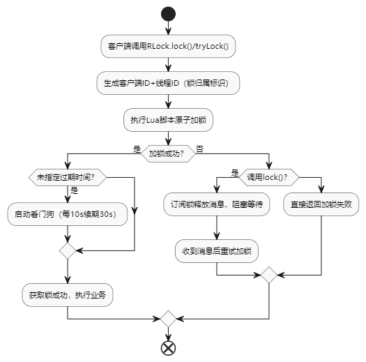 手动过期时间:也可通过 lock(long leaseTime, TimeUnit unit)指定固定过期时间,此时看门狗不会生效(需业务保证在过期前执行完)