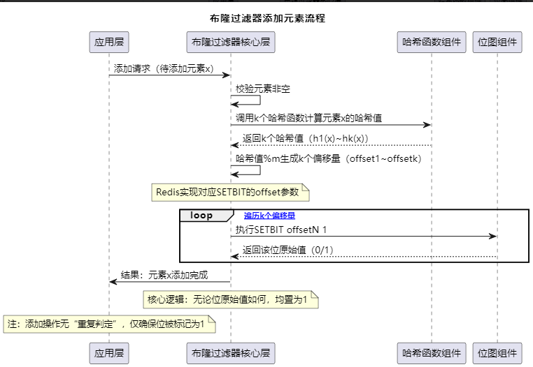 通过 RedissonClient 获取 RBloomFilter 实例,封装通用的添加、查询方法
