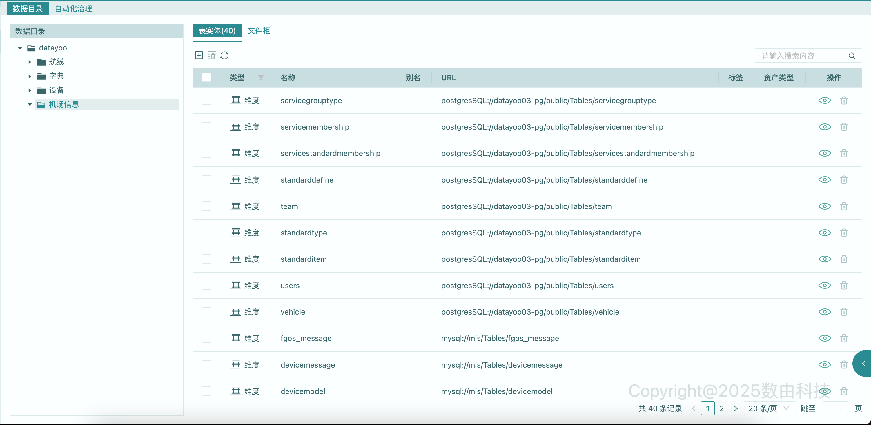 分散在不同数据库中的数据表与数据字段缺乏统一表示。在对其进行治理管理时,需能方便的追溯,定位并访问到源数据库。