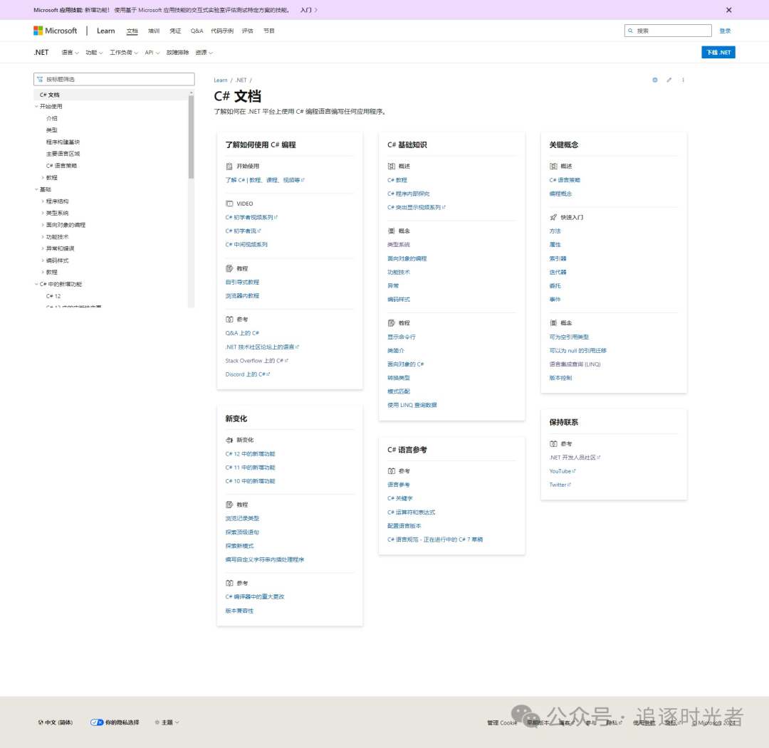 对于 C#/.NET 的学习,微软官方文档是一个非常好的学习资料。这些文档提供了详细的说明和示例代码,涵盖了 C#/.NET 的各个方面。按照文档的目录逐步学习,可以让你循序渐进地掌握语言和框架的各个语法和概念。