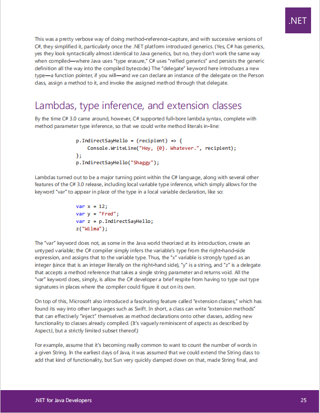微软官方出品一份免费的电子书适用于 Java 开发人员的.NET 快速入门指南,阅读 Java 和 .NET 专家 Ted Neward 的这份指南,了解如何开始使用 .NET 平台、工具和生态系统,该指南是从 Java 开发人员的角度编写的。