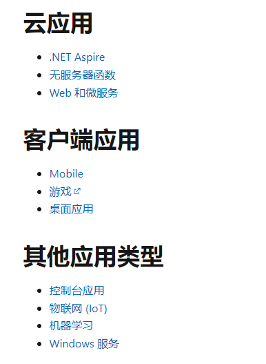 .NET 支持生成多种应用,包括客户端、云和游戏。