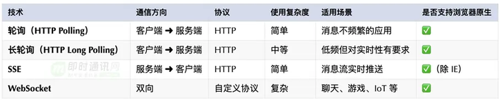 网页端 IM 通信技术快速入门:短轮询、长轮询、SSE、WebSocket